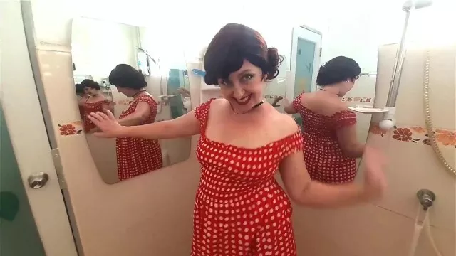 Pinup Babe has no Panties in Front of Mirror Retro Vintage Nude Maid Housewife