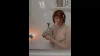 Short Haired Cutie take Bong Tokes in Bath
