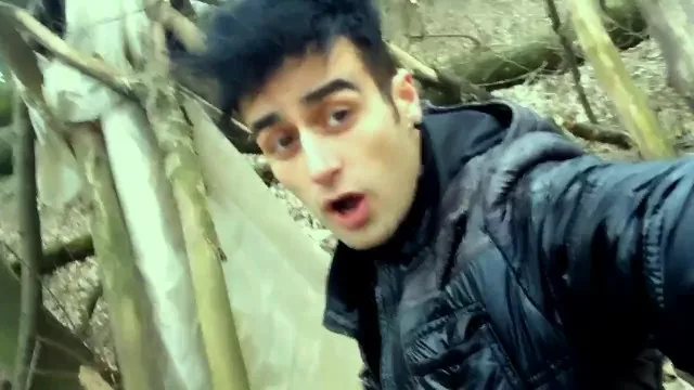 Quick cumshot on the picnic tent in a forest