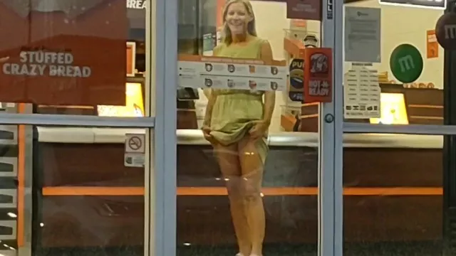 Milf flashes kitty at little caesars