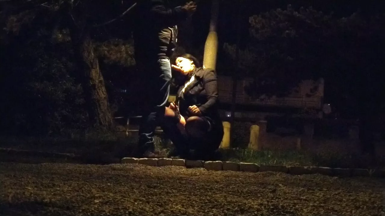 Cock sucking under the night light